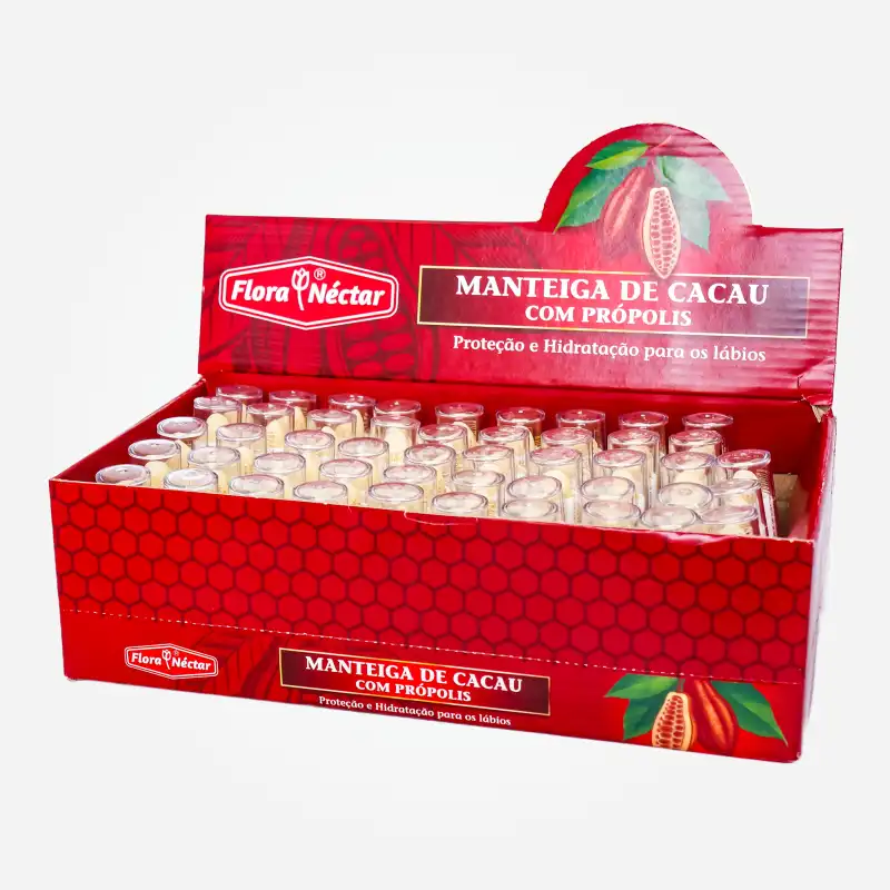 Manteiga de Cacau Flora Nectar é um produto diferenciado pois contém própolis em sua composição o que contribui para hidratar ainda mais os lábios evitando o ressecamento por ação do vento e temperatura, além da fragrância suave.